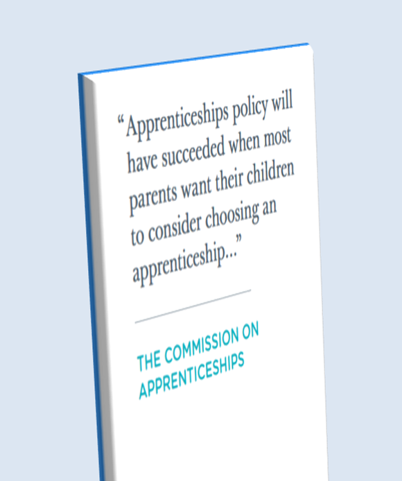 The report sets out to illustrate how apprenticeships can achieve status in socieity and currency in the labour market so that parents and young people consider choosing an apprenticeship when thinking about their options.